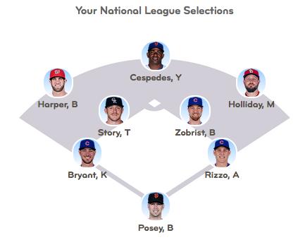 ** : Les images des sélections sont prises à partir du site MLB.com et ne permettent pas de placer les OF selon leurs positions respectives