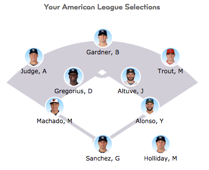 Enfin notons que nos lecteurs ont complètement renouvelé leur sélection 2016 puisque seuls Mike Trout et Manny Machado sont les rescapés du #ASGTheStrikeOut 2016 dans vos petits coeurs de fans. Un choix peut-être plus surprenant pour Machado que Trout tant il y avait peut-être meilleur à son poste sur la cuvée 2017. On pense notamment à Moustakas des Royals ou Sano des Twins. Ceci dit, et on le comprend, le 3e B des Orioles est sans aucun doute plus « star system ».