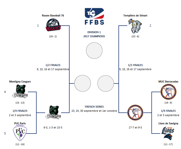 La logique est respectée. Au sortir des quarts de finale, ce sont bien les quatre premiers de la saison régulière qui vont s’affronter à partir du samedi 9 septembre, sur deux week-ends, dans une série au meilleur des cinq matchs. La D1 se rapproche de son dénouement et Rouen reste encore largement favori à sa propre succession. Mais Sénart et Montpellier comptent bien déjouer les pronostics, tandis que Montigny vit un rêve éveillé en étant un promu demi-finaliste.