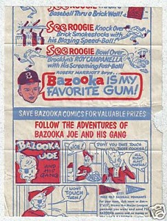 A la fin de la Seconde Guerre Mondiale, un grand nombre de compagnies firent leurs retours sur le marché du chewing-gum, ce qui relança la concurrence et, de ce fait, les besoins de publicités et autres promotions. Topps n’échappa pas à cette « guerre » commerciale, notamment contre son principal concurrent Bowman Gum et dut alors innover afin de mettre en avant ses produits. C’est à cette période que Topps sortit un nouveau chewing-gum, vendu par 5 et enroulé dans un emballage cylindrique, dénommé « Bazooka gums« . Ceux-ci étaient vendus enroulés dans un papier sur lequel était imprimée une mini bande dessinée (ou « comics » au USA) dont un des principaux personnages était dénommé Bazooka Joe .