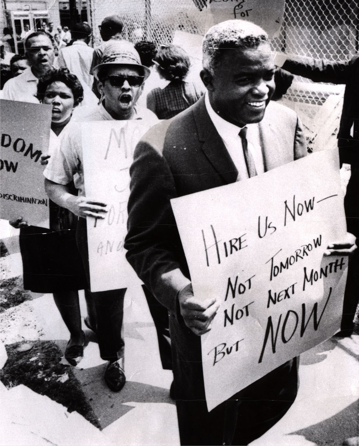 Je ne reviendrai pas sur la carrière du célèbre numéro 42 que porteront aujourd’hui tous les joueurs de la MLB. Vous pouvez la retrouver sur The Strike Out. Ce qui est important d’avoir en tête ici, c’est ce qu’il a accompli, sur et en dehors des terrains, comme joueur et comme citoyen. Jackie Robinson est un symbole « bigger than life » comme disent les américains. Ce fut aussi un militant des droits civiques. Tout d’abord par l’exemple, la résilience, l’excellence sportive pour faire plier les préjugés racistes et ouvrir les portes aux autres afro-américains dans le baseball et dans la société. Puis, ce militantisme par l’exemple s’est mué en action politique quand il s’est rendu compte que l’exemple ne suffisait pas, qu’il fallait hausser le ton, porter la voix plus loin et plus fort, s’engager radicalement pour le changement et obtenir ce changement radical.