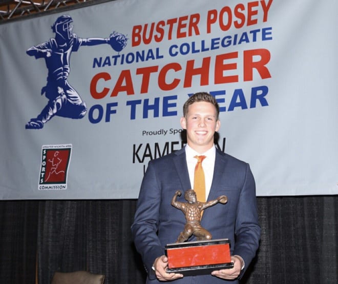 Et après une saison au poste, il finit second au Johnny Bench Award, récompensant le meilleur catcher universitaire. Et pour faire bonne mesure, en plus de disputer tout les matchs en tant que catcher, il est aussi utilisé comme closer, n’hésitant pas à réclamer à jouer à ce poste quand il sent que le pitcher auxquel il envoie les signaux est au bout !