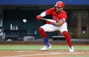 Ceci étant dit, venons-en maintenant au bunt pour un hit. Avec un coureur rapide ou dans certaines situations, il reste une arme redoutable. Eli White des Rangers a bunté avec succès à plusieurs reprises lors cette saison 2022. C’est un coureur rapide, avec une grosse expérience de bunt à l’université, et son jeu s’inscrit dans parfaitement dans la tactique des Rangers. Ce sont autant de raisons qu’il l’ont poussé à l’intégrer à ses options à la frappe. Il le dit lui même, cela lui a pris un peu de temps pour être à l’aise, afin que cela soit facile et naturel et qu’il prenne confiance sur ce type de jeu. Sa vitesse et sa maîtrise parfaite du geste sont un véritable atout pour mettre la pression au sein de l’infield, il faut bien l’avouer.