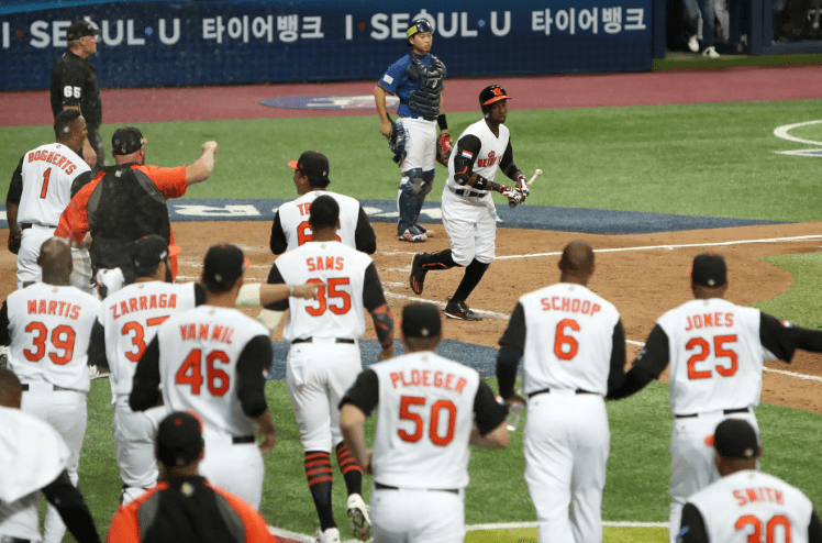 La plus forte impression vient de l’infield : Xander Bogaerts, Didi Gregorius (Phillies), Andrelton Simmons, Jonathan Schoop, Richie Palacios (qui peut aussi jouer en champ extérieur) et le receveur backup des Braves Chadwick Tromp ont tous évolué en MLB la saison dernière. Bogaerts, en particulier, sort d’une très belle saison (voir joueur à suivre). Les vétérans Gregorius, Schoop et Simmons, le meilleur défenseur de sa génération et qui a gardé de beaux restes à ce niveau, amèneront leur expérience. Les deux premiers, bien qu’en déclin, conservent néanmoins la capacité à frapper la longue balle.