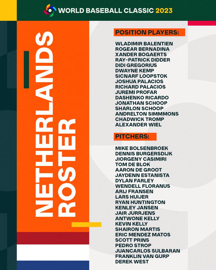 Double demi-finaliste de la WBC en 2013 et 2017, l’actuelle 7ème nation au ranking WBSC arrive avec un statut de nation majeure du baseball mondial. Une sorte d’anormalité quand on connaît la place du baseball en Europe. Mais, las de dominer uniquement la scène européenne, les quadruple champions en titre ont décidé de s’imposer au top niveau mondial depuis le début des années 2010 et le titre de champion du monde amateur en 2011. Et la WBC a été, jusqu’à présent, leur scène favorite pour montrer la force du baseball néerlandais, notamment grâce à l’apport des joueurs de Curaçao qui traçaient leur chemin en MLB et les autres grands championnats professionnels comme Didi Gregorius, Xander Bogaerts, Kenley Jansen ou Wladimir Balentien.
