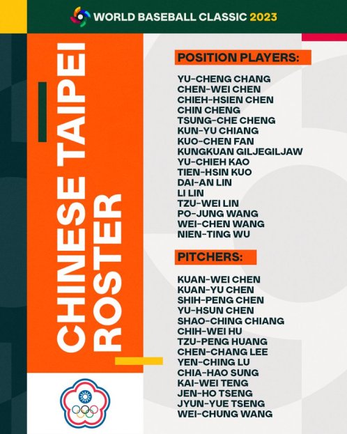 Trois autres joueurs firent partie de la NPB la saison dernière. Deux sortent du lot : Sung Chia-hao, lanceur des Rakuten Golden Eagles, qui fut NPB All-Star en 2021 et Wang Po-jung (voir joueur à suivre). Le roster comprend ainsi le top de la CPBL en termes de talents comme l’outfielder des Uni-President 7-Eleven Lions Chieh-Hsien Chen qui frappe pour .349 de moyenne en carrière, Kungkuan Giljegiljaw, un receveur qui a passé six années en ligues mineures chez les Guardians et, bien entendu, les meilleurs joueurs de la saison 2022 de la ligue taïwanaise : Li Lin, seconde base des Lamigo Monkeys, qui a reçu le MVP (et qui partage le titre de HR King avec Giljegiljaw), le releveur des Wei Chuan Dragons Kuan-Wei Chen, rookie de l’année, et Tzu-Peng Huang, partant des Rakuten Monkeys, qui a terminé avec le meilleur ERA (2.33).