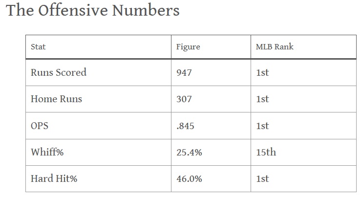 « Dominante », c’est l’adjectif parfait pour qualifiée l’attaque des Braves (sur la saison régulière donc). La preuve en tableau.