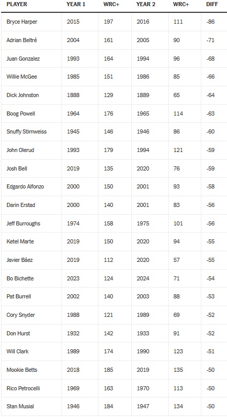 George Springer a aussi atteint un plus bas en carrière : une moyenne de .220, un OPS de .674, une baisse de 5mph d’exit velocity (allez quand même 19HR et 16SB). Lui à 35 ans, donc contrairement à Bichette, il a moins de marge pour remonter la pente.